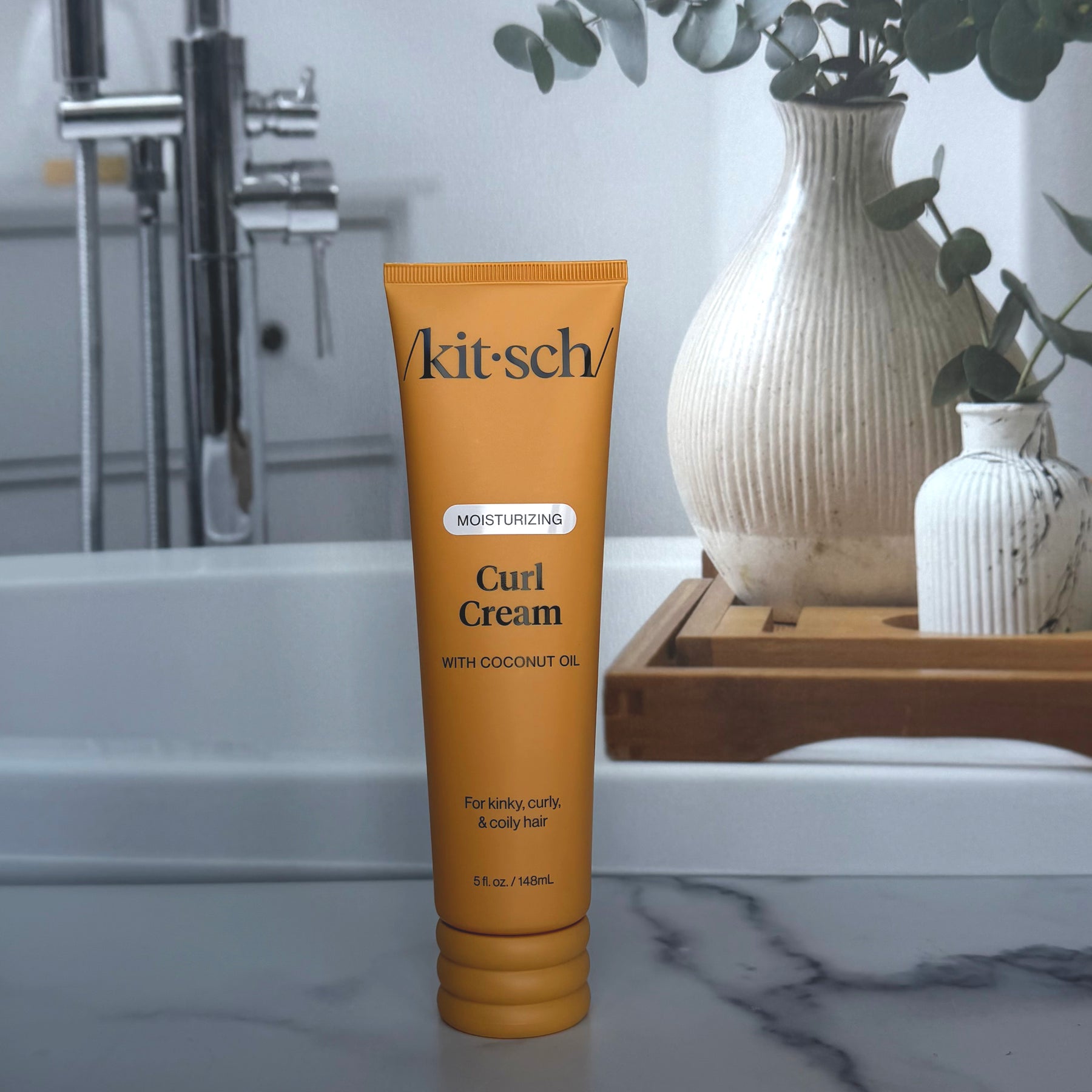 Kitsch Curl Cream is a rich yet feather-light formula designed to revive and enhance your natural curl pattern while delivering lasting moisture. It supports curl memory, smooths flyaways, and controls frizz — all with a soft, touchable hold that never feels stiff or heavy.